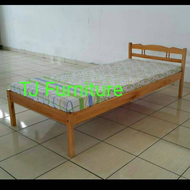 Single Bed Tempat Tidur Kayu Ranjang Kayu No 4 Uk 90 X200 Super